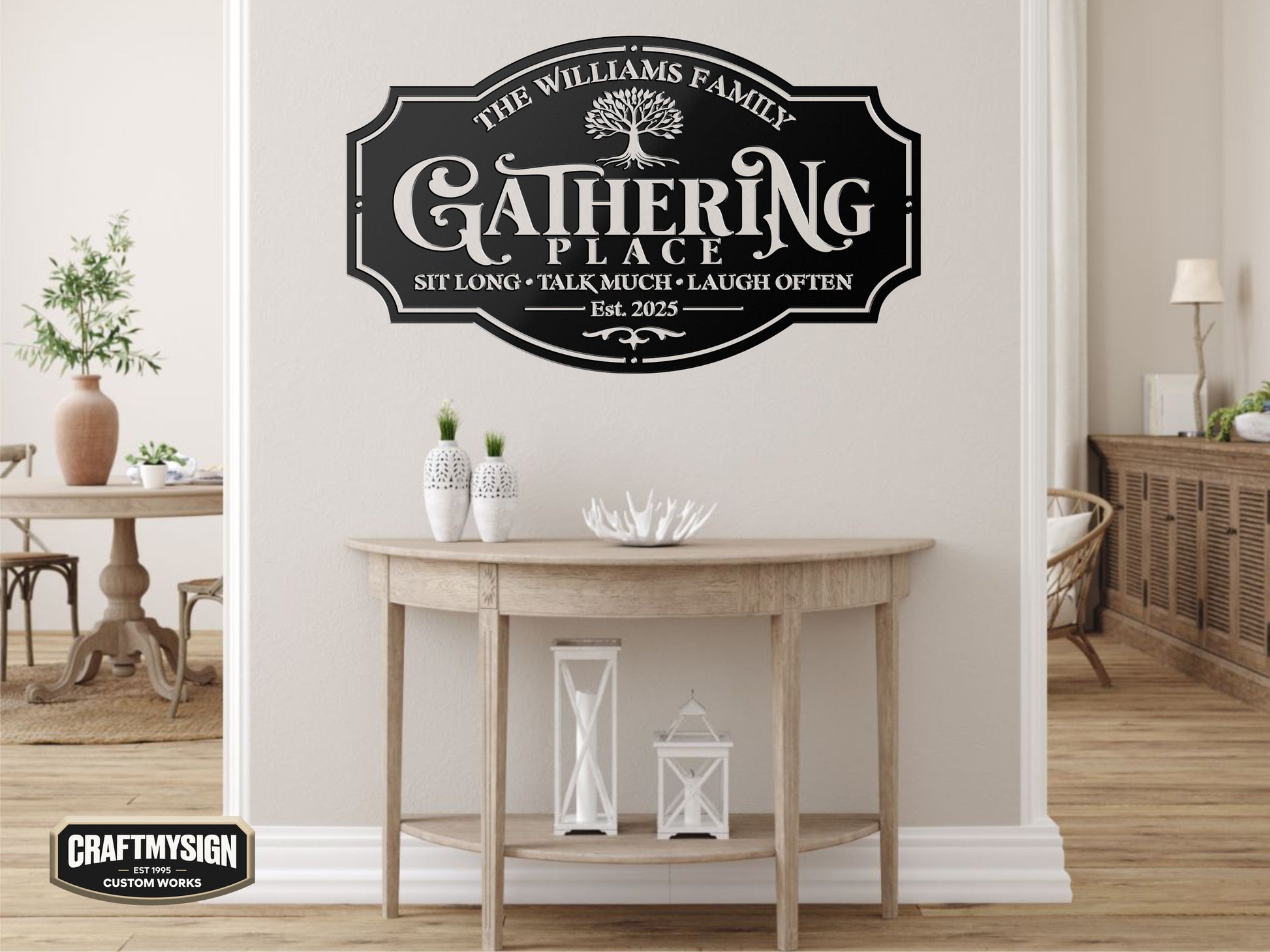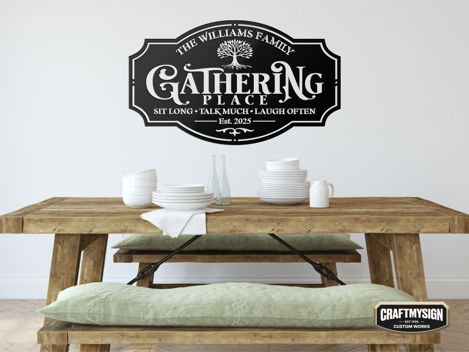 From the first spark of inspiration to the moment it’s mounted on your wall, each piece is made with care, precision, and purpose. We use premium metal, powder-coated to perfection, so your family name or favorite quote stays shining bright for decades.